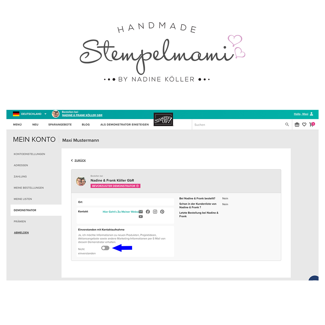 Solltest Du diese Einstellung noch nicht vorgenommen haben, so bestätige bitte die Kontaktaufnahme! Nur mit dieser Bestätigung, dürfen Stampin‘ Up! und wir Dich kontaktieren.