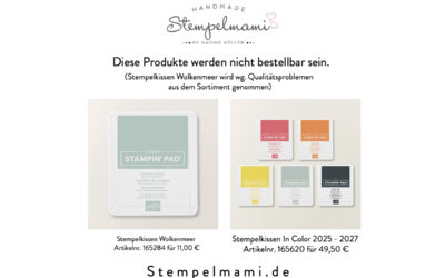 Hallo Ihr Lieben, zum Start des neuen Stampin' Up! Jahreskataloges 2025-2027 gibt es eine wichtige Mitteilung für Euch. Leider wird noch vor Katalogstart das In Color Stempelkissen Wolkenmeer aus dem Sortiment...